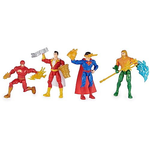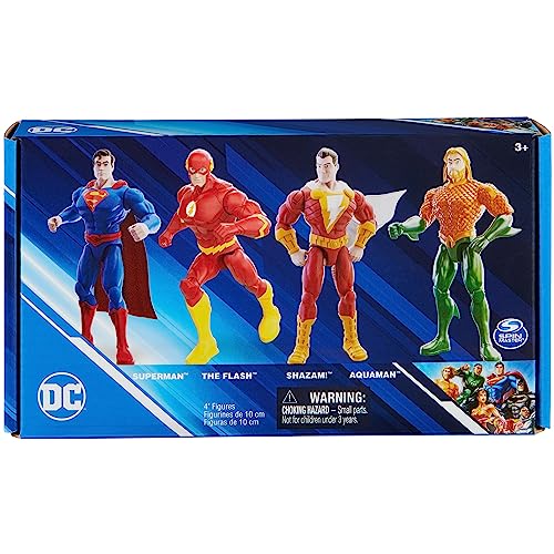 DC Comics, Action Figures 4-Pack, Superman, The Flash, Shazam!, Aquaman 4-inch Figures, Accessories, Superhero Kids Toys for Boys and Girls, Ages 3+