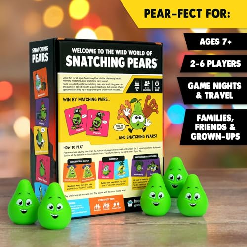 HILARIOUSLY HECTIC! Grab your copy now and dive into the wild world of Snatching Pears, one of the best new family board games this year!