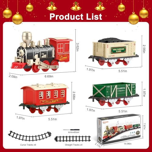 Train Set, Christmas Train w/Xmas Sounds & Lights, Christmas Tree Train, Christmas Train Sets for Around The Tree, Train for Christmas Tree Boys Girls 3 4 5 6 7 8 Years Old Toddlers Christmas Toy Gift
