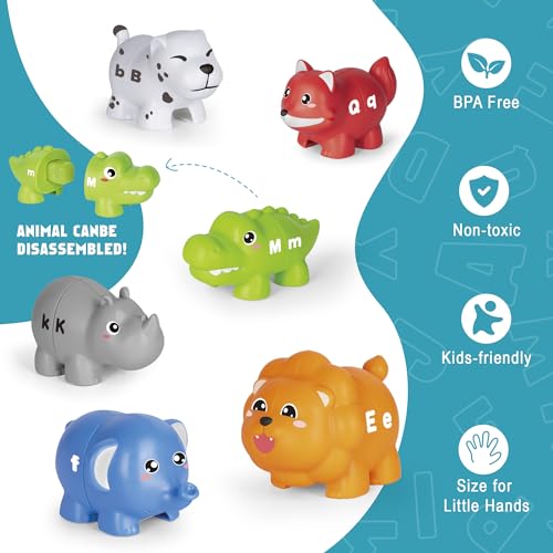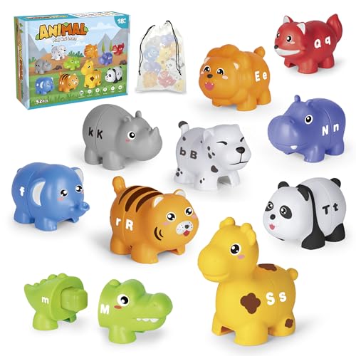 52 PCS ABC Animals Alphabet Match Game with Uppercase Lowercase, Learning Toys for 2 3 4 Year Old, Alphabet Set for Kindergarten, Preschool Activities Montessori Fine Motor Toys for Toddlers Kids