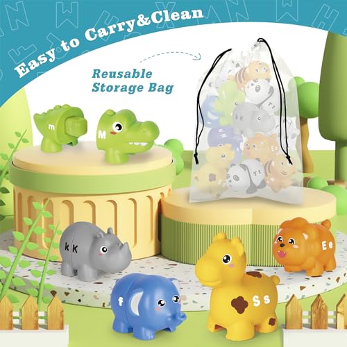 Fun Spelling & Matching Games: 26 safari animals for 26 letters! There are the same letters on either side of the safari animals pieces, which makes it able to spell out simple words. Cute alphabet safari animals are easy to assemble, mix, match, and store with a portable draw-string bag.