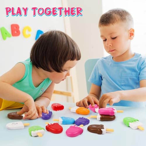 【Durable Educational Toy】 The high-quality ice-lolly alphabet set is an ideal manipulation game for improving fine-motor skills in classrooms, homeschooling aid, and daycare tool. Kid-friendly size and smooth surface makes it perfect for small hands to grip and put each part together with ease. Various eye-catching colors help develop color identification skills and help keep a child’s attention