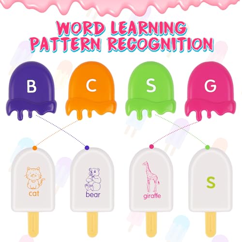 【Fun Alphabet Matching Game】 Each ice-lolly is double-sided.On one side are lowercase letters, and on the other side are patterns and words.It effectively helps little ones grasp the concept of matching uppercase and lowercase letters with delight and ease.