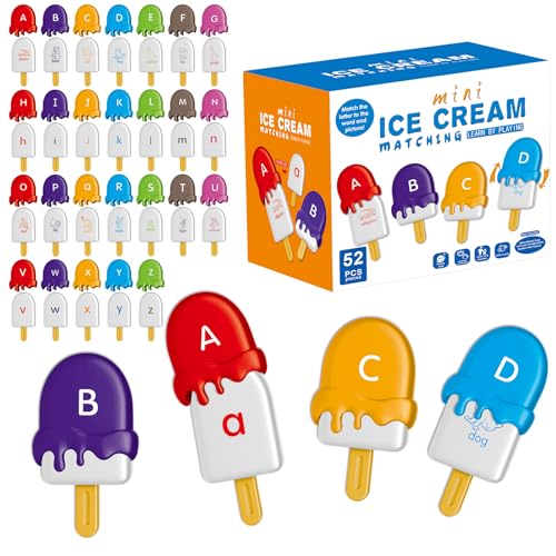 52PCS Ice-Lolly Alphabet Learning Toys for Toddlers 2-4, Montessori Educational Toys Gifts for 2 3 4 Year Old Boy Girl, ABC Matching Game, Preschool Activities Fine Motor Toys for Kids