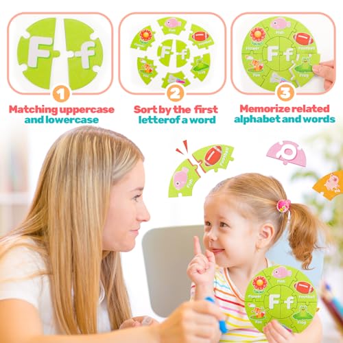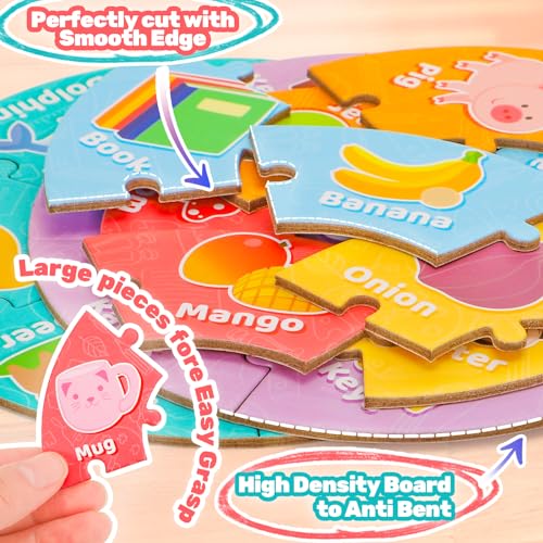 【Safety & Durability & Meticulous Workmanship】Printed with non-toxic ink, the ABC puzzle fully complies with international safety standards. Perfect cutting ensures they fit together seamlessly. Thick cardboard ensures the puzzle won’t bend or be damaged, ensuring perfect use for several years.