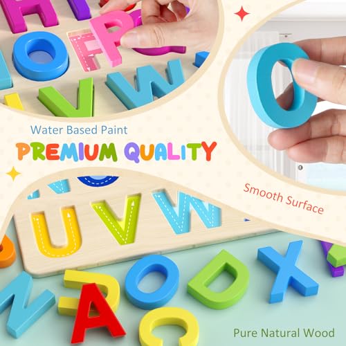🎁【Ideal Present for Kids】🎁Get this wooden alphabet toys for your child as birthday gifts, Easter gifts, holiday presents and daily toys. Don’t miss any chance to surprised your kids.