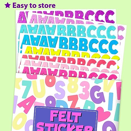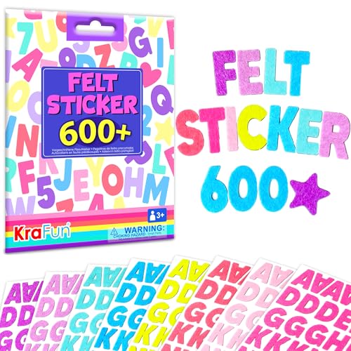 KRAFUN Felt Sticker Kit for Beginner Young Girls and Kids Arts & Crafts, Pack of 600 Assorted Scrapbook Stickers Alphabets, Numbers, Fun Shapes, Preschool, Children Early Learning, self Adhesive