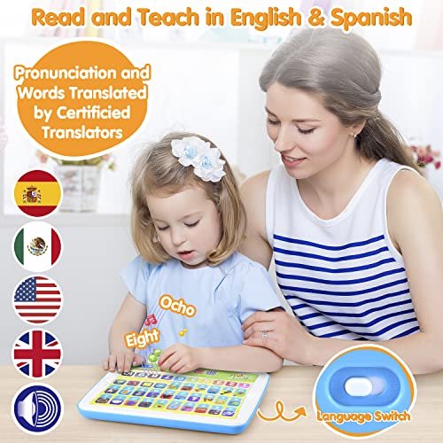 Bilingual Spanish & English Learning Toys for Toddlers 1-3, Kids Interactive Learning Tablet, Childrens Alphabet ABC / Words / Numbers / Colors Learning Pad, Education Toy for Babies 24 Month+