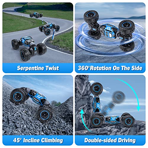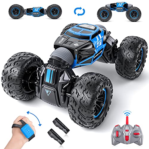 Powerextra Gesture Sensing RC Car, 1:16 Scale Outdoor Remote Control Car Crawler, 4WD Transform RC Car, Double Side All Terrains Toy Stunt Car with Two Batteries, 50+ Mins Play Time for Kids & Boys