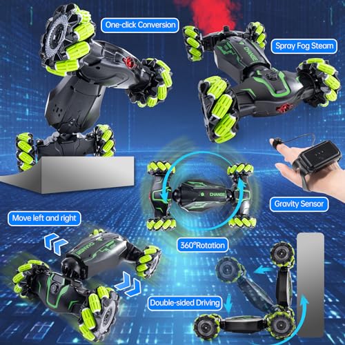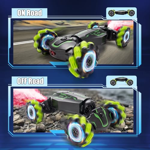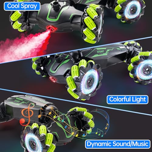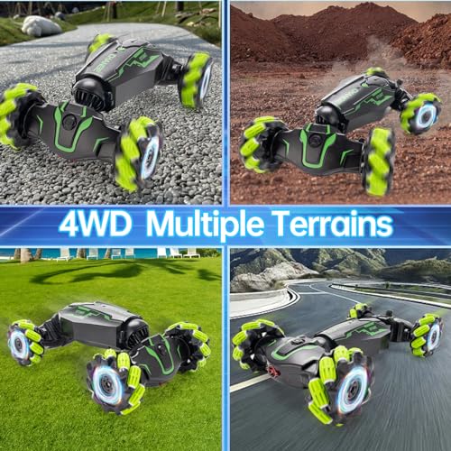 Remote Control Car for Boys, 2.4 GHz 4WD Gesture Sensing RC Stunt Car with Cool Music Light, 360° Rotating Flips Off-Road Vehicle Twist Car Toys for Kids Age 6-12 (Green)