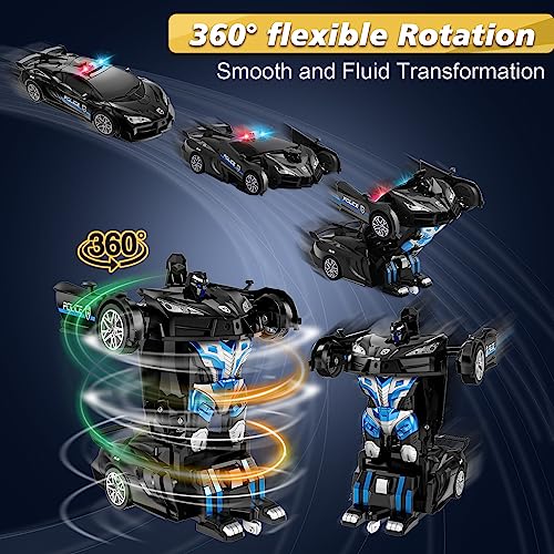 Remote Control Car for Kids , One Button Transformation to Robot with Flashing Light 2.4 Ghz Transforming Robot Car 1:18 Scale Transform RC Cars Toy Boys Girls Birthday Gift with 360 Degree Rotation