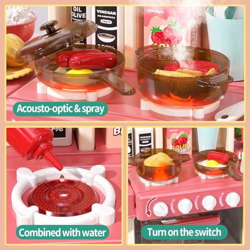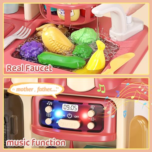 47PCS Kids Kitchen Playset with Sound & Light, Cooking Stove with Steam, Play Sink and Toy Kitchen Accessories – Pretend Kitchen Play Food Toys for Boys and Girls, Toddler Kitchen Set (Red)
