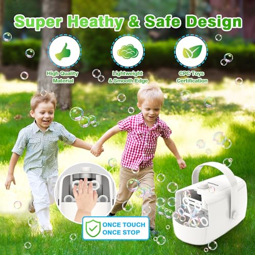 【High Quality Materials & Safe Design】Made From Durable ABS & PP Materials with Superior Toughness and Rust Protection, Smooth Edge From Advanced Tooling Treatment Process. Bubble Maker Has Official CPC Toys Safety Certificates and Safe Design ‘Once Touch, Once Stop!’