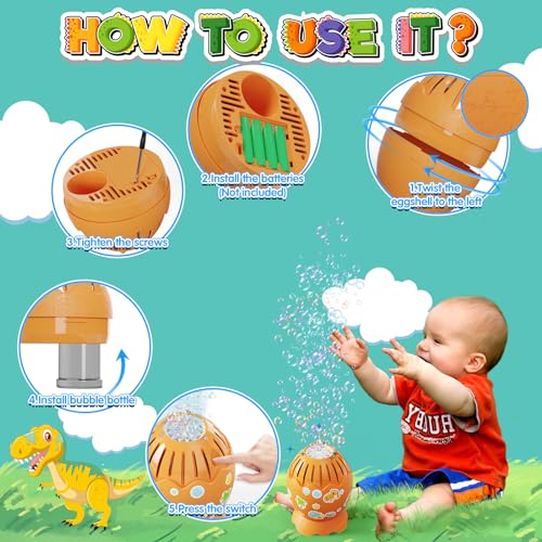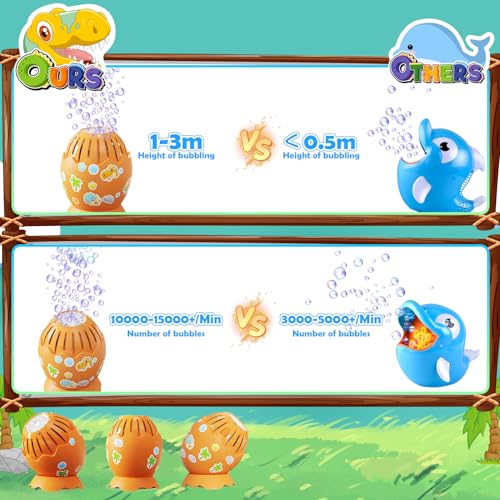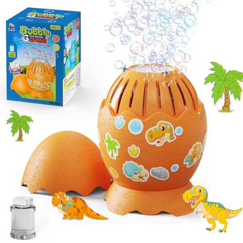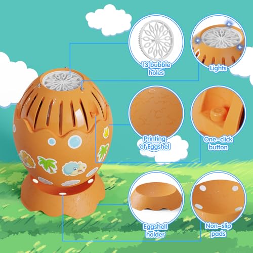 PANACARE Dinosaur Egg Bubble Machine Portable Automatic Bubble Maker for Kids with DIY Stickers/10000+ Bubbles/Led Light/Bubble Solution/Best Outdoor Summer Toys for Kids Bubbles Party Gifts