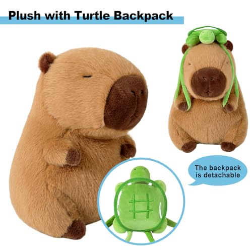 Ditucu Cute Capybara Plush with Turtle Backpack Soft Capibara Stuffed Animals Plushies Toys Hugging Gifts for Kids Brown 9 inch