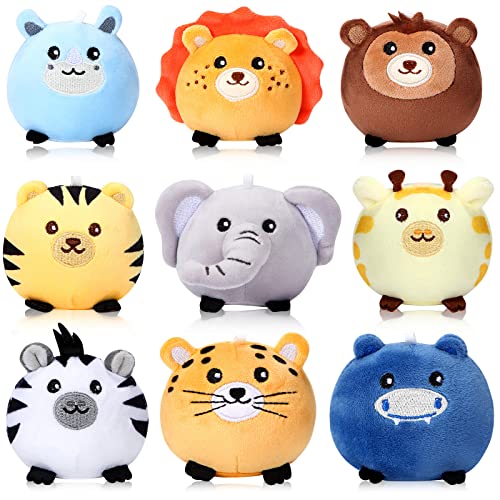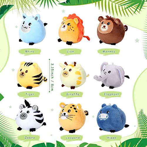 Mini Plush Toys Set: you will receive 9 pack small animal plush toys, including tiger, zebra, giraffe, rhino, lion, elephant, monkey, leopard and hippo, each mini plush animal measuring about 3.15 inch/ 8 cm; Small in size so that it is easy to carry anywhere